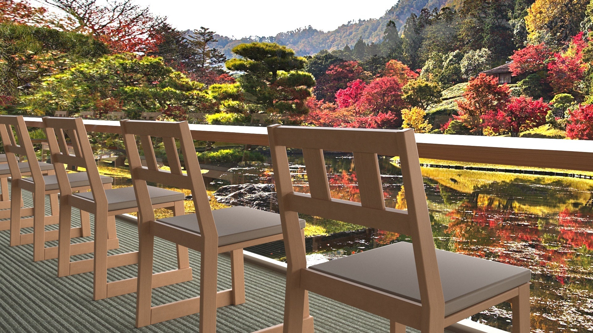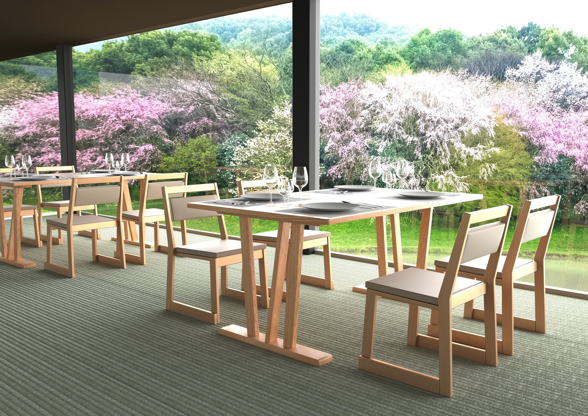 ゆめみ-チェアシリーズは和室用のチェアとして旅館や料理店での採用の多い人気商品です。ゆめみ-チェアの脚は通常の4本脚と比べ、ぐらつきにくい丈夫なカマチ構造。『畳ずり』という脚の形状で角面には柔らかい丸みをつけているため引きずっても畳を傷つけませんので和室ダイニング、客室用など業務用にも適しています。また、スタッキング(重ねること)もできるので収納場所もコンパクトに収めることができることも魅力です。チェアはテーブルの高さ(低めの60cmと65cm)に合わせた座面高さ35cm・40cmの2タイプをそれぞれ肘付きのアームチェア・肘なしのサイドチェアと取り外しのできる背クッションタイプ・背板タイプでカラーはナチュラル色とブラウン色の2色からお選びいただけます。