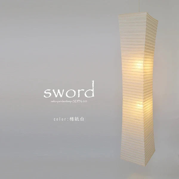 和紙ペンダントライト-和紙照明ペンダント-日本の和紙ランプ-和風ペンダントライト-手作り和紙照明-薄紙ペンダントライト-モダン和紙照明-和紙照明デザイン-伝統的な和紙照明-吹き抜け照明-大型照明-吹き抜け用-和風ペンダントライト-ソード SDPN-205 楮紙白 電球別売