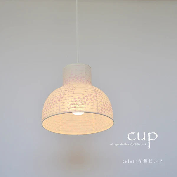 和紙ペンダントライト-和紙照明ペンダント-日本の和紙ランプ-和風ペンダントライト-手作り和紙照明-薄紙ペンダントライト-モダン和紙照明-和紙照明デザイン-伝統的な和紙照明-小さな空間-多灯吊り-1灯ペンダントライト カップ 花舞ピンク SPN1-1118 電球別売