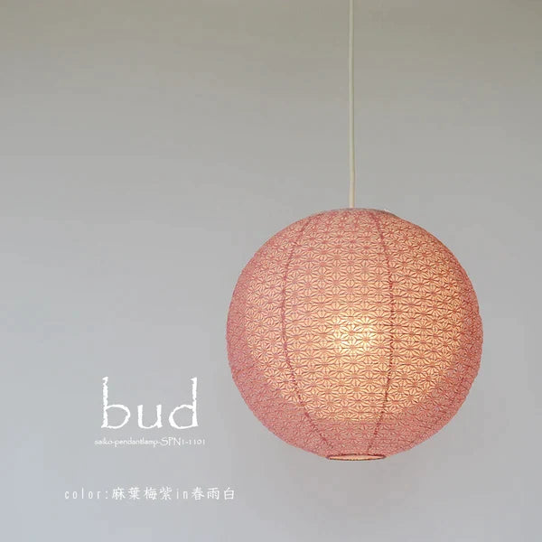 和紙ペンダントライト-和紙照明ペンダント-日本の和紙ランプ-和風ペンダントライト-手作り和紙照明-薄紙ペンダントライト-モダン和紙照明-和紙照明デザイン-伝統的な和紙照明-4畳用照明-二重提灯-1灯-ペンダントライト-バド-spn1-1101-麻葉梅紫in春雨白-電球別売
