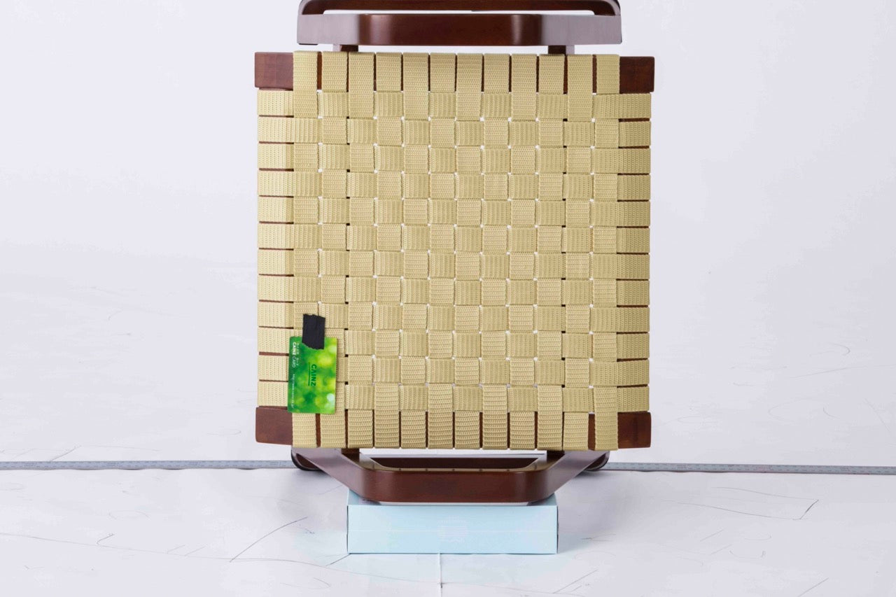 成型合板の柔らかなラインと編み込みシートが特徴。軽くてシンプルなデザインは様々なシーンでお使いいただけます。弓なり型の肘部は立ち上がりの補助として、ご高齢の方にも配慮した設計です。編み込みのシートは適度にフィットし、長時間の使用でも疲れません。※5脚まで垂直にスタッキング可能。